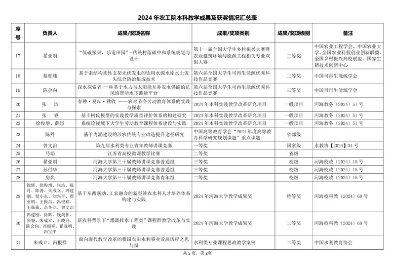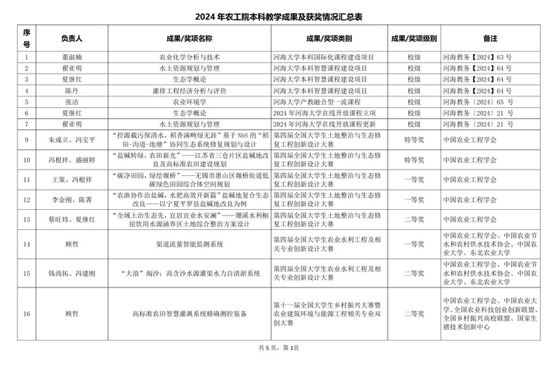 2024年必赢国际bwin本科教学成果及获奖情况汇总表