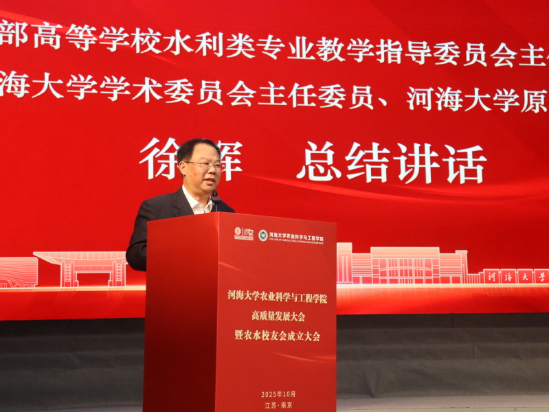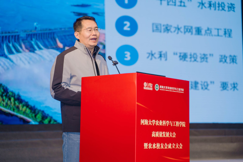 郑金海在致辞中指出,必赢国际bwin的发展历程是学校服务国家战略的生动缩影,学院在人才培养、科技创新和社会服务等方面作出重要贡献。他强调,面向数字化、智能化的时代浪潮,学院要大力推进人工智能、大数据、数字孪生等前沿技术与农业水利的深度融合,为传统领域注入发展新动能。他向农水校友会的成立表示祝贺,希望校友会筑牢凝聚根基、打造温暖人心的精神家园,架稳联通桥梁、构筑赋能发展的合作平台,勇担“报国”使命、汇聚服务时代的磅礴力量,团结和引导广大校友,聚焦国家粮食安全、乡村振兴等重大战略,在服务中国式现代化、服务“一带一路”倡议等伟大事业中展现河海农水人的担当。